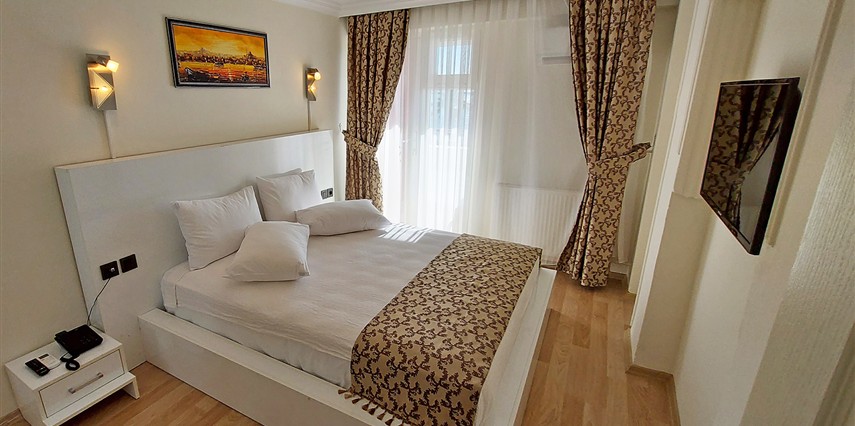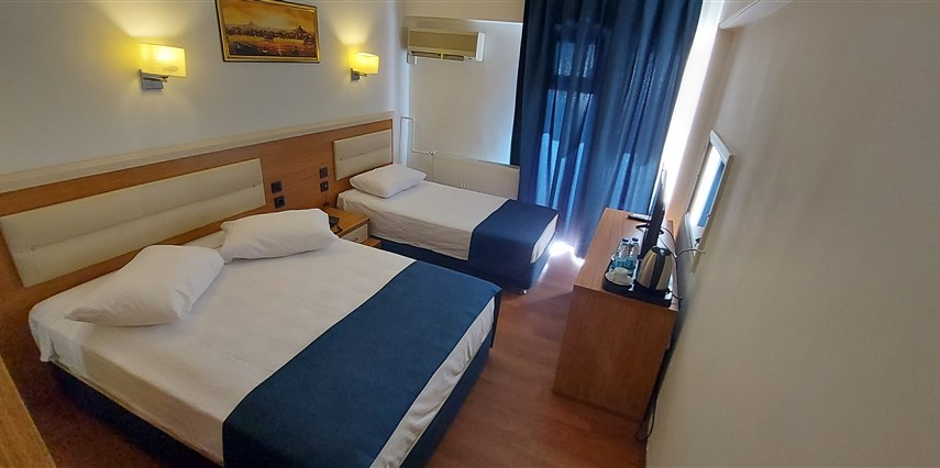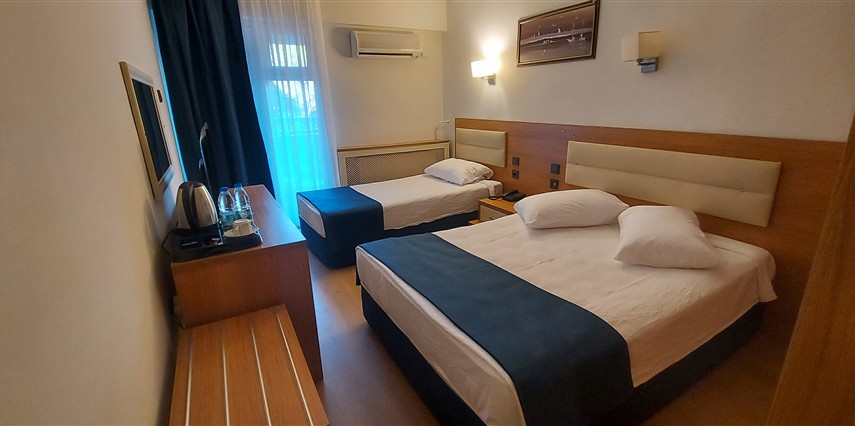 *Standart Deniz Manzaralı Oda: 27 adettir. 16 m² genişliğindedir. 1 çift kişilik yatak ve 1 tek kişilik yatak bulunmaktadır. 1 adet banyosu mevcuttur. Max. 2+1 kişi konaklamaya uygundur.