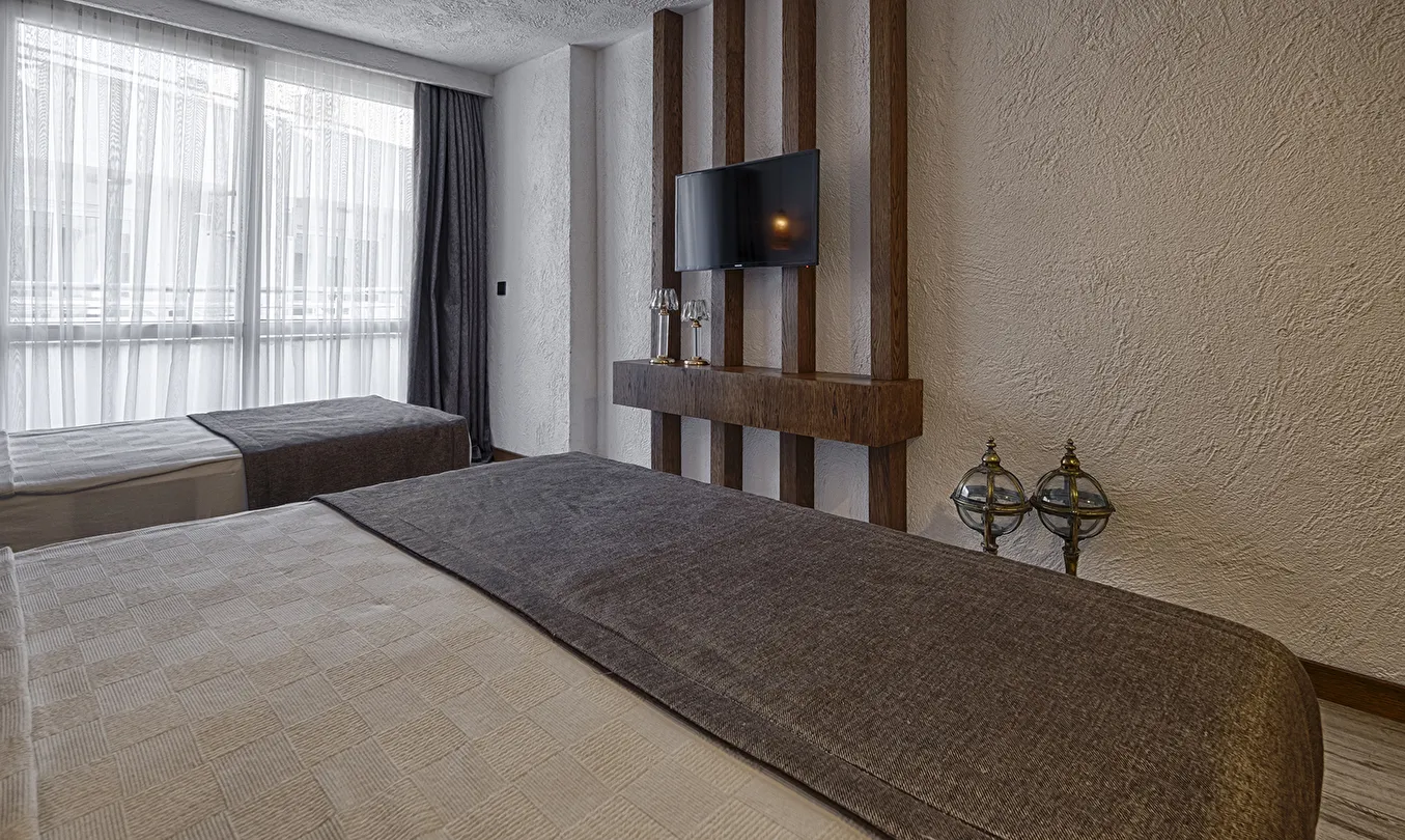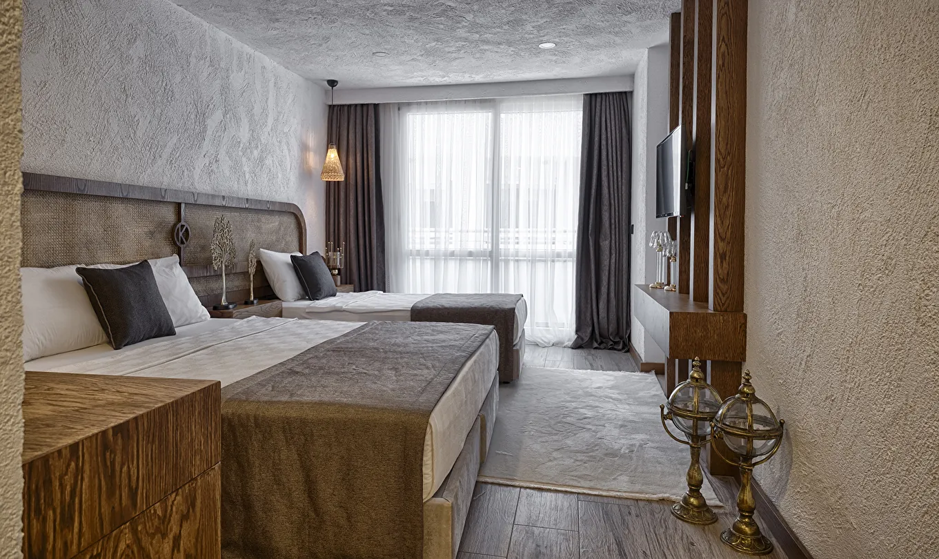 *Tesisin toplam 90 adet odası bulunmaktadır. Tüm odalarda emniyet kasası, mini bar, televizyon, merkezi sistem klima, direkt hatlı telefon ve fön makinası mevcuttur.