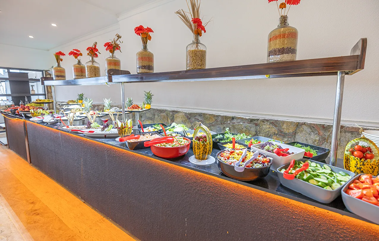 Sabah kahvaltısı, öğle ve akşam yemekleri açık büfe olup tesisin belirlediği markalar dahilinde yerli alkollü ve alkolsüz ücretsizdir.