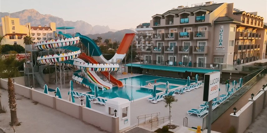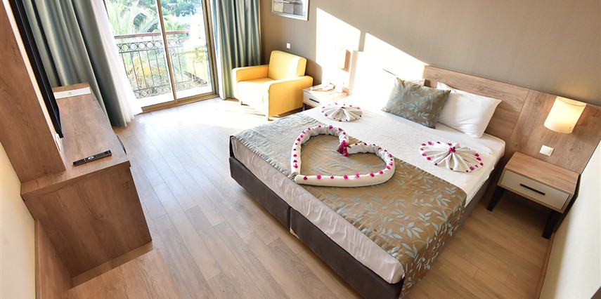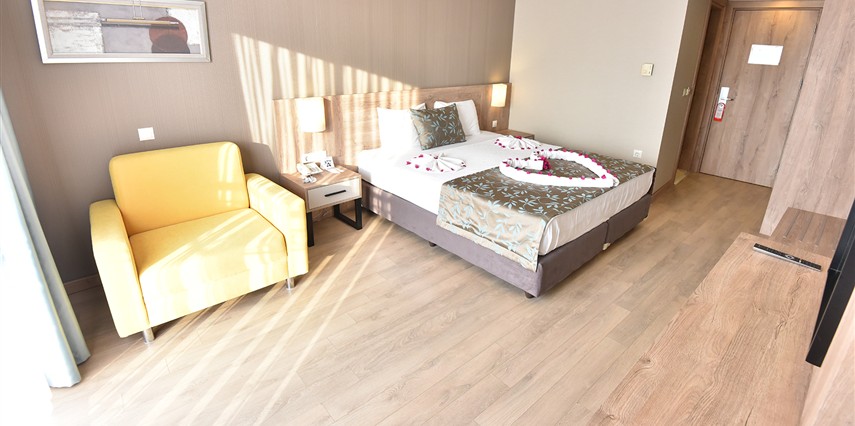 * Anex odalar tamamen yenilenmiş ve standart odalar ile aynı özelliklere sahiptir. Lcd tv, duş, emanet kasa, mini bar, saç kurutma makinesi, telefon konaklamanız boyunca faydalanabileceğiniz mevcut hizmetlerdir. Anex odalar otelin ek binası olup ana binaya 10 m mesafededir. Anex bina ile ana bina arasından trafik akışının hemen hemen olmadığı 5m lik yol geçer. Anex bina da ultra herşey dahil konseptin geçerli olduğu bar mevcut olup bunun dışındaki yeme içme hizmetini ana binada verilir. Tüm odaları balkonludur.