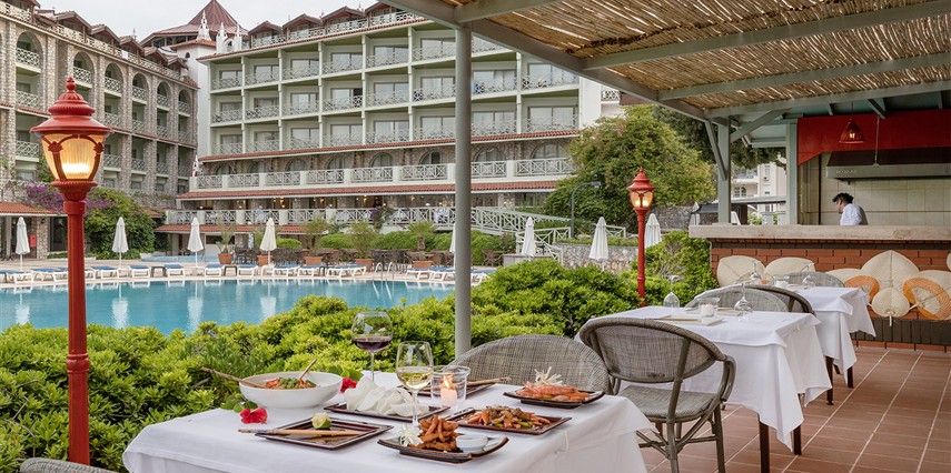 Sabah Kahvaltısı, öğle ve akşam yemekleri açık büfe olup, tesisin belirlemiş olduğu markalar dahilinde yerli alkollü ve alkolsüz içecekler 01:00'a kadar ücretsizdir. İmport içecekler ücretlidir. 01:00'dan sonra alınacak olan tüm yiyecek ve içecekler ücrete tabidir.