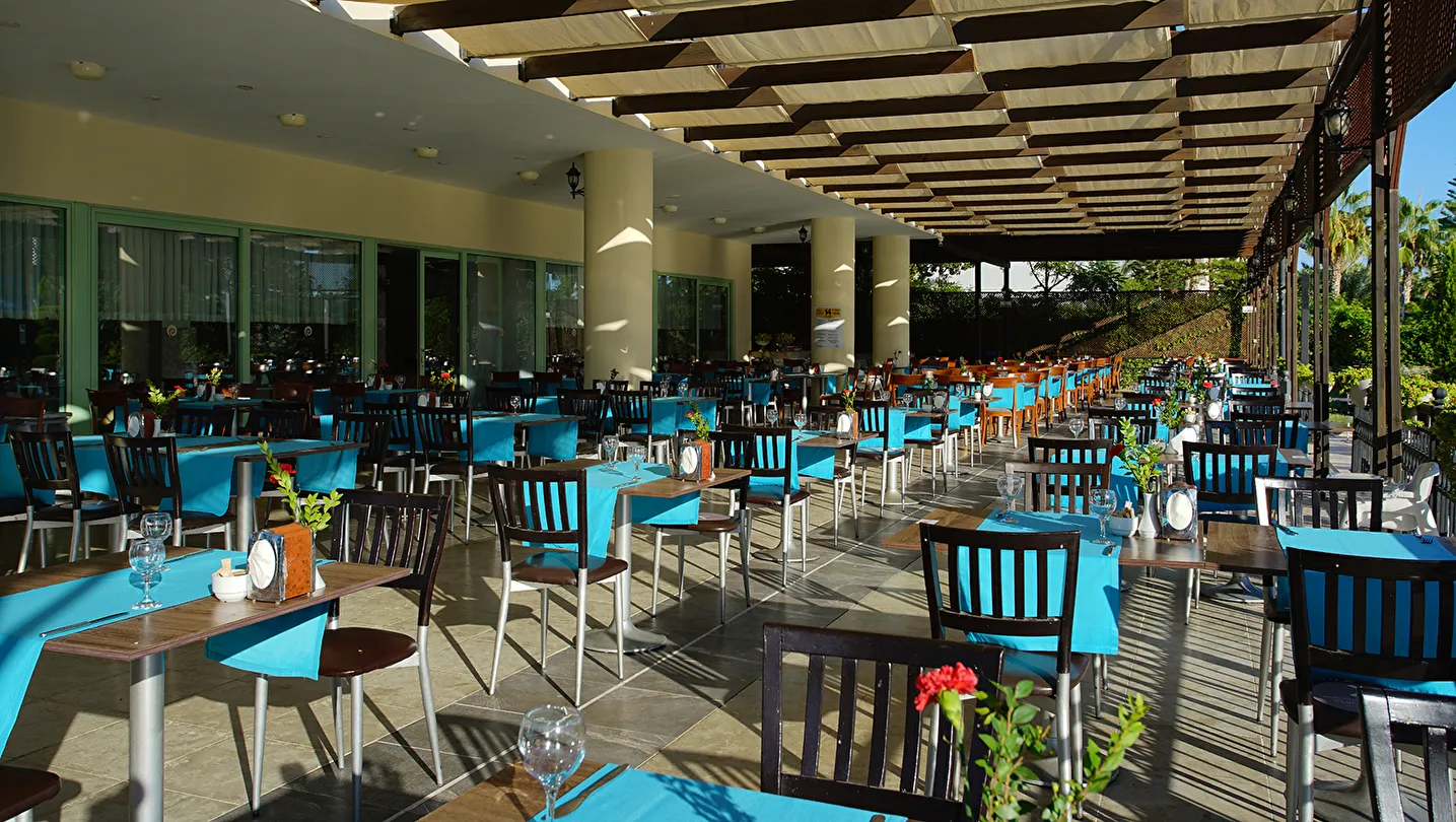 Türk A La Cart’e Restaurant (Mevsim koşullarına bağlı hizmet verir) (19:00 – 21:00 saatleri arasında)(Rezervasyonlu, Ücretsiz)(15 Haziran - 15 Eylül tarihleri arasında hizmet verir. Minimum 7 gecelik konaklama süresi boyunca 1 kez ücretsiz kullanılabilir. 7 gece altı konaklamalar için ücretlidir.